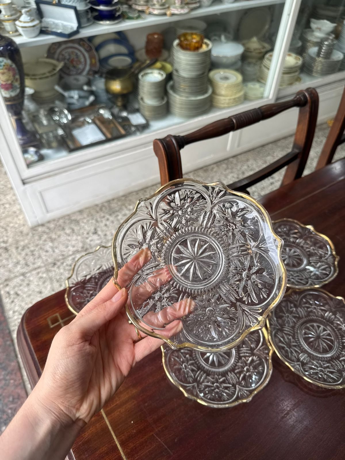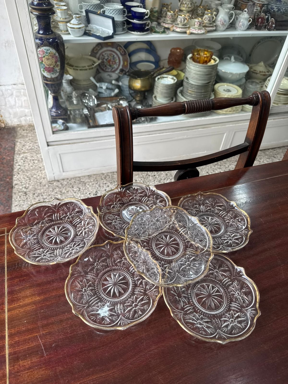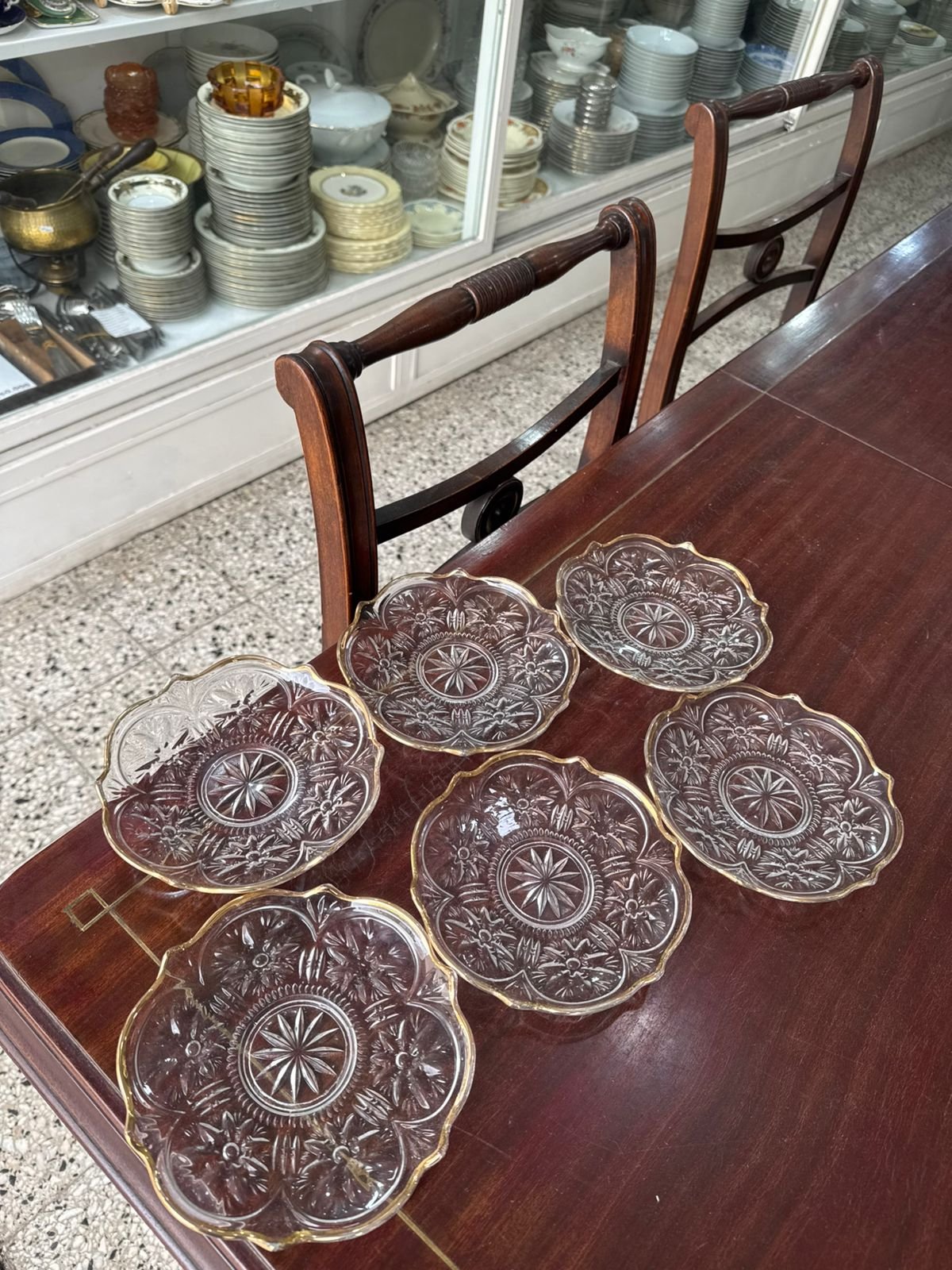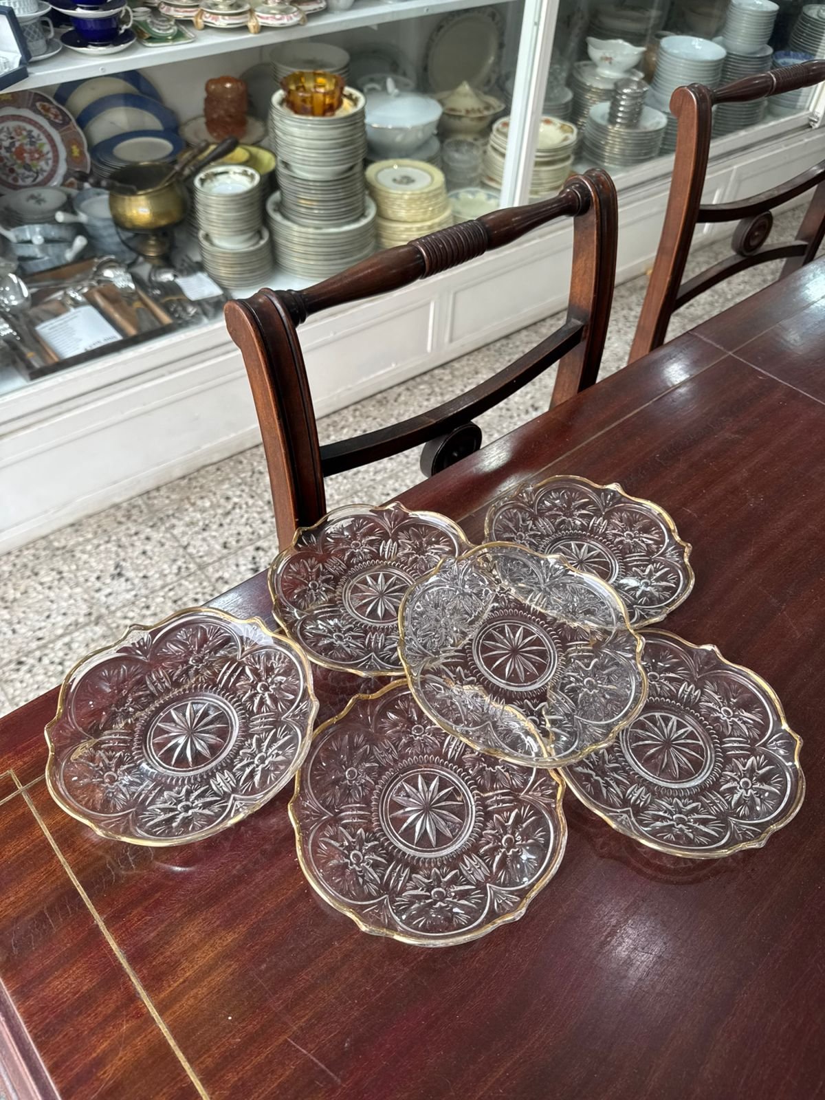 Juego de 6 platos de pan vidrio prensado con dorado