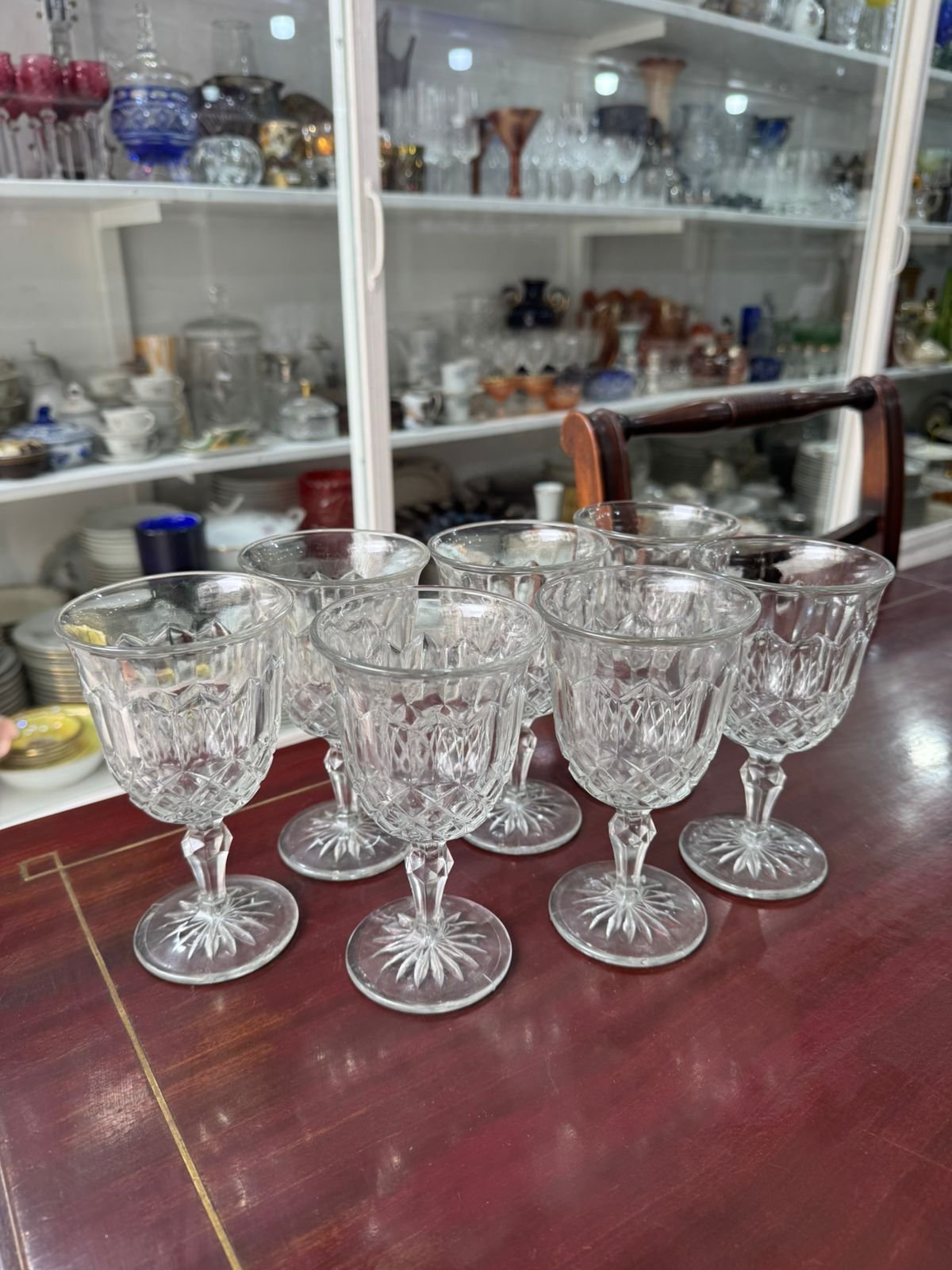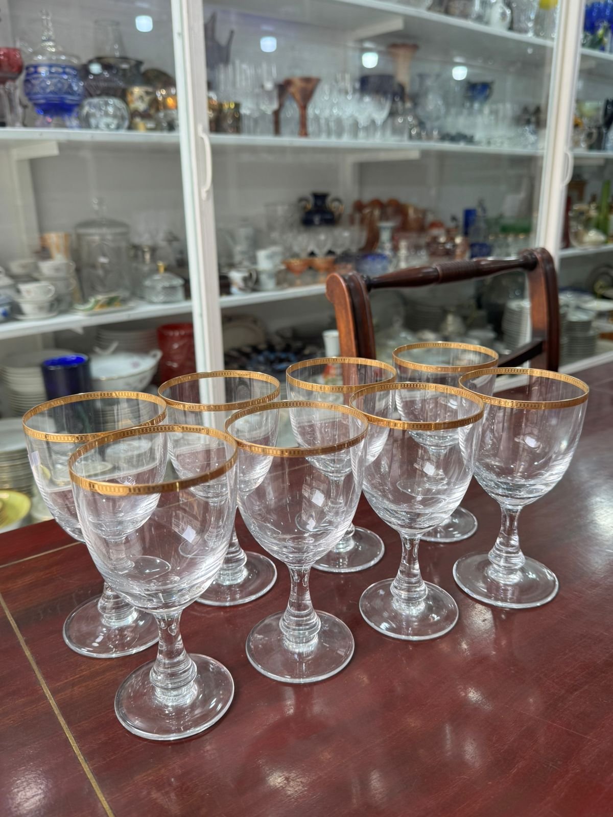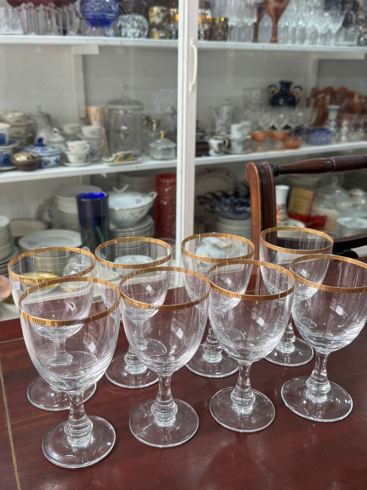 Juego de 8 copas de cristal con guarda en oro