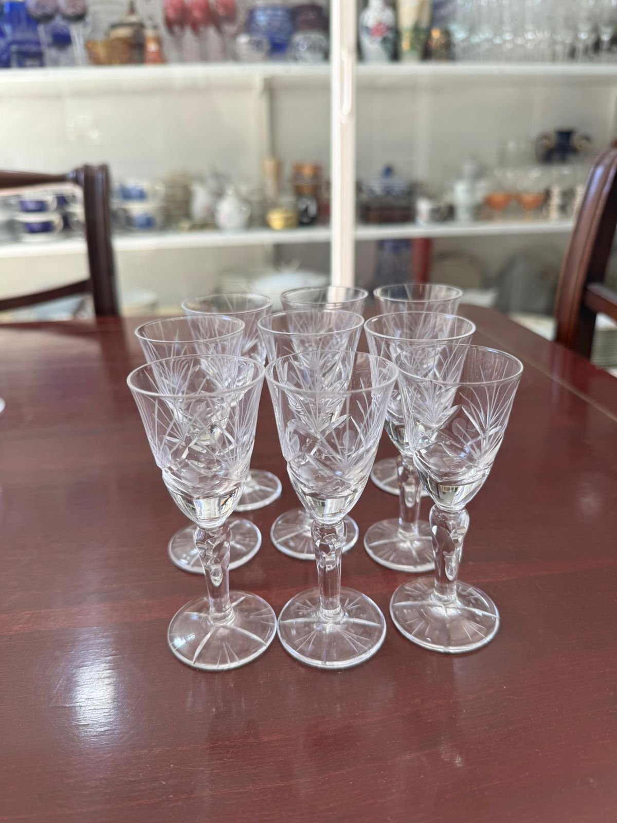 Juego de 8 copas de cristal súper tallado para licor