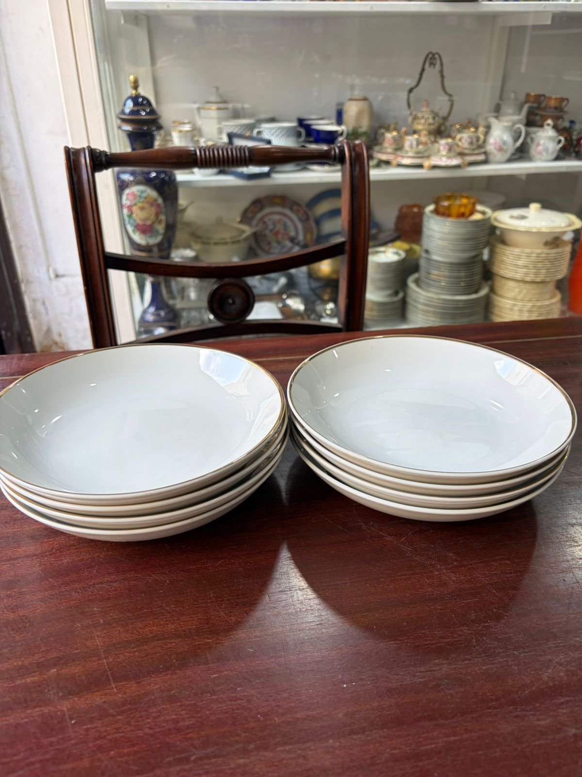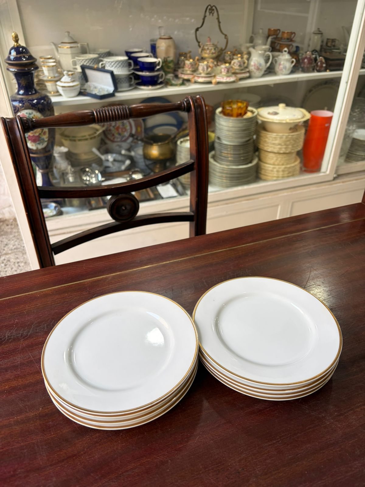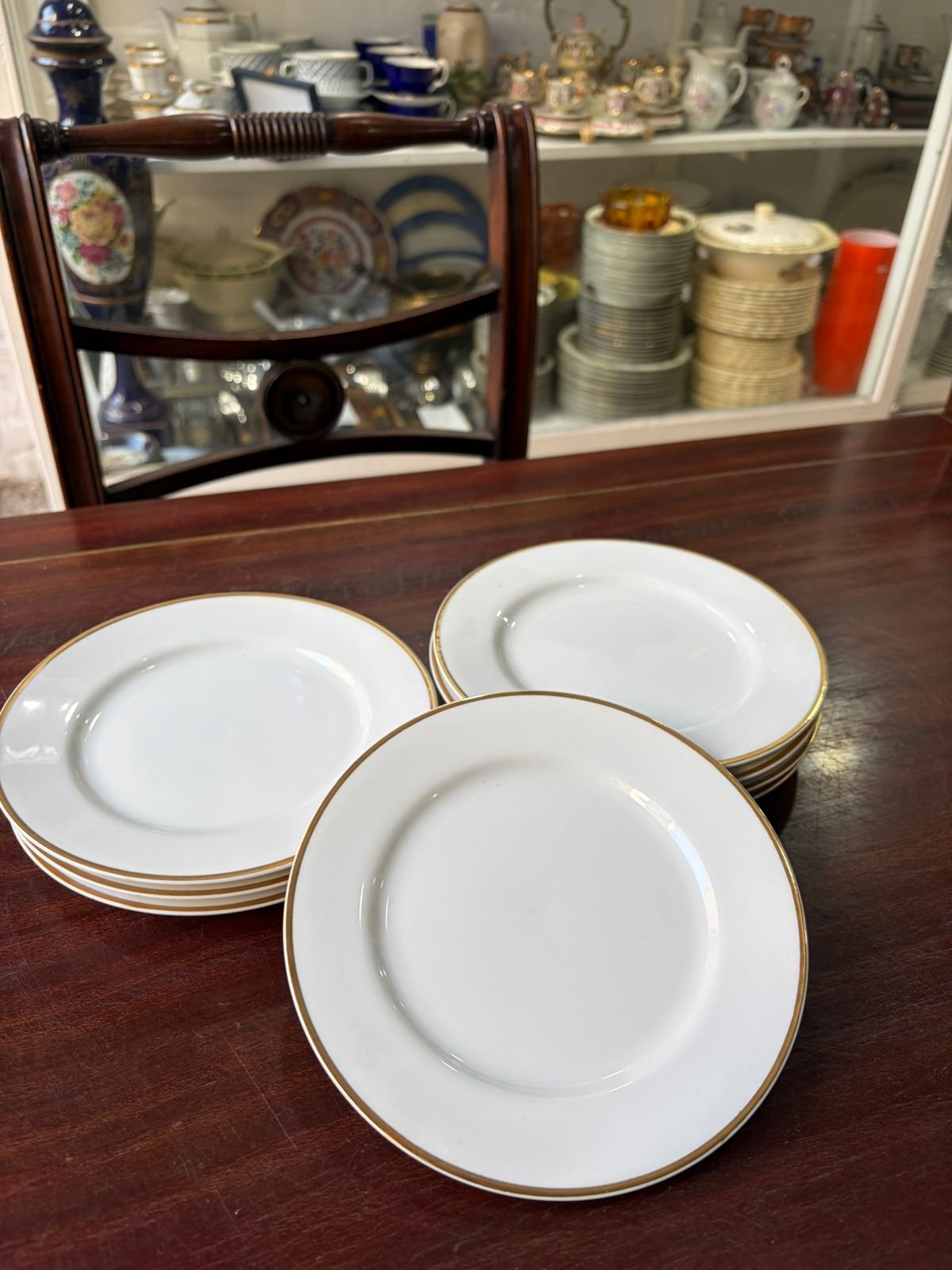 Juego de 8 platos de postre porcelana con guarda en oro