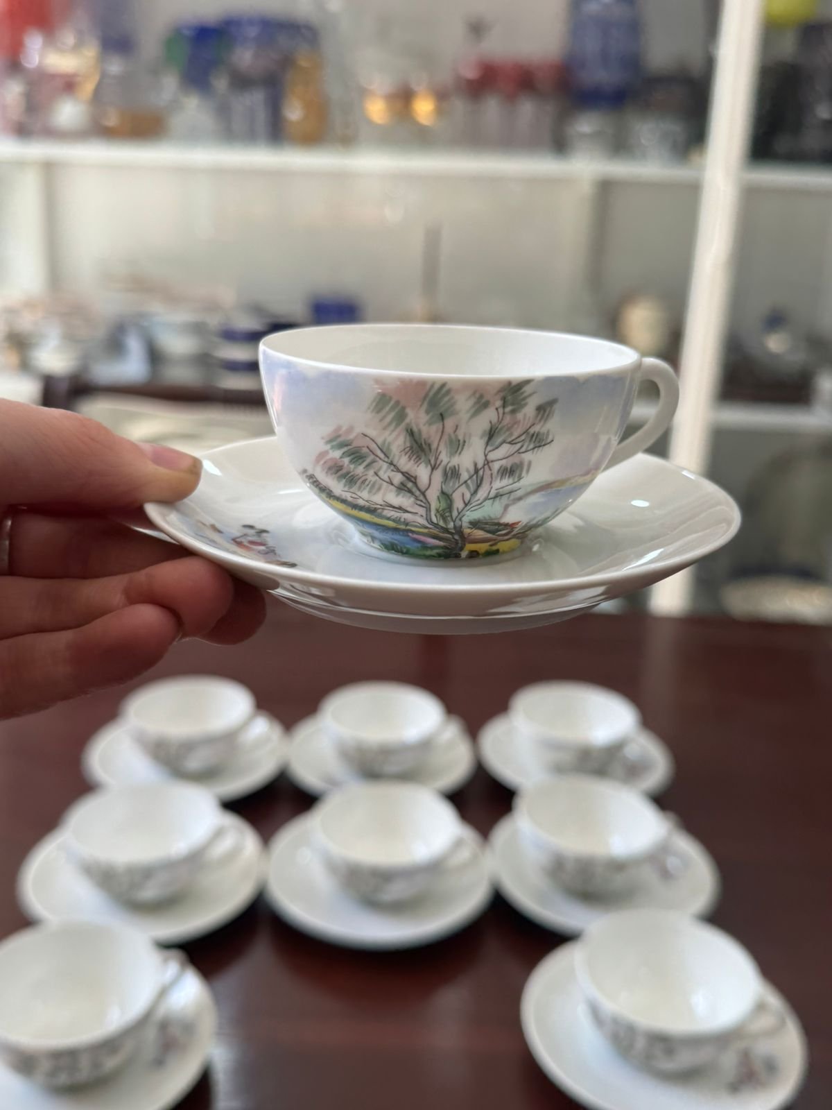 9 tazas de café con platos