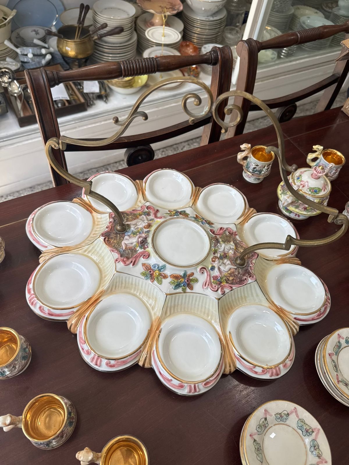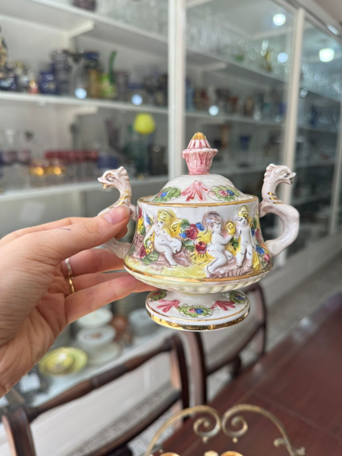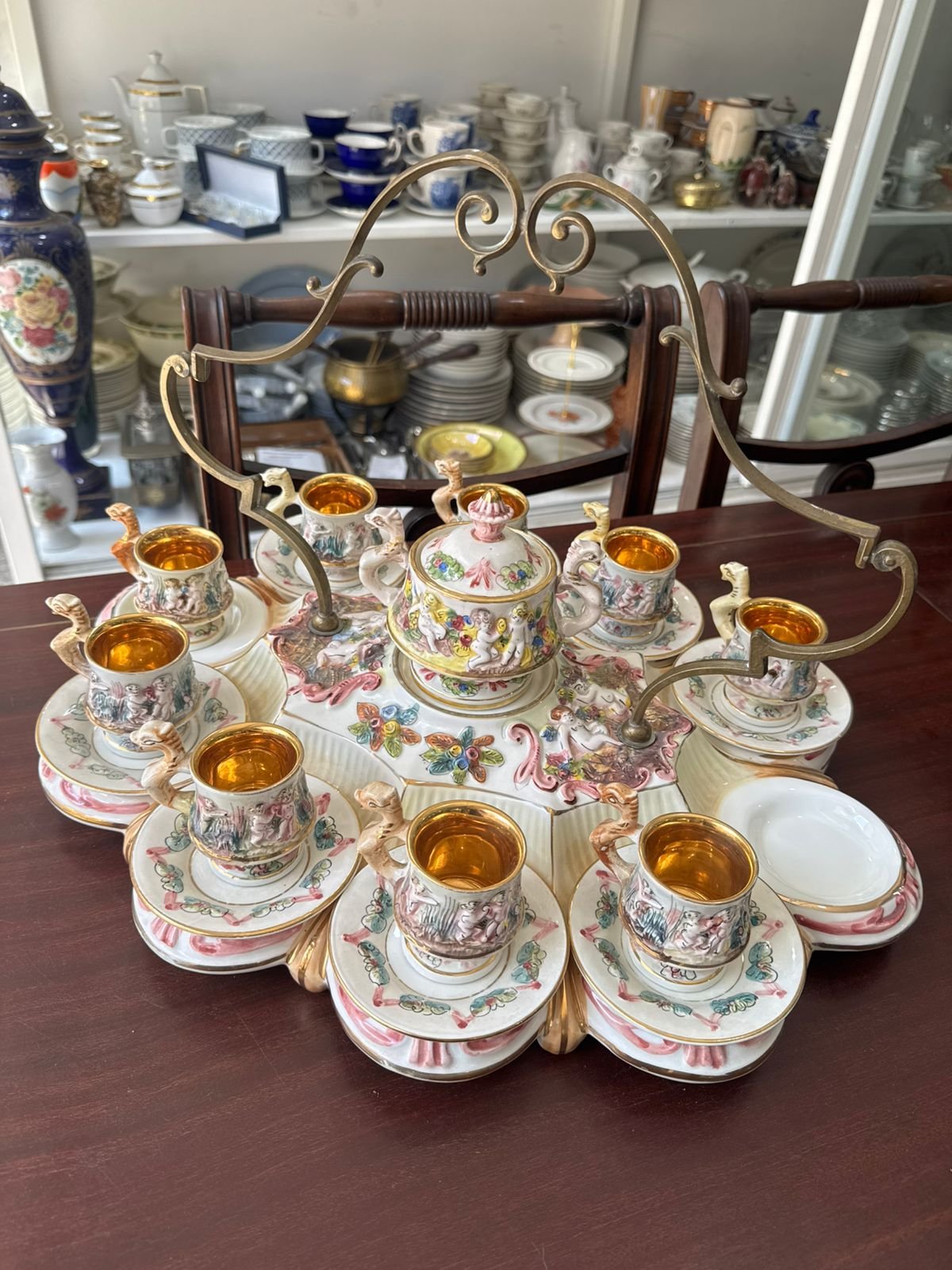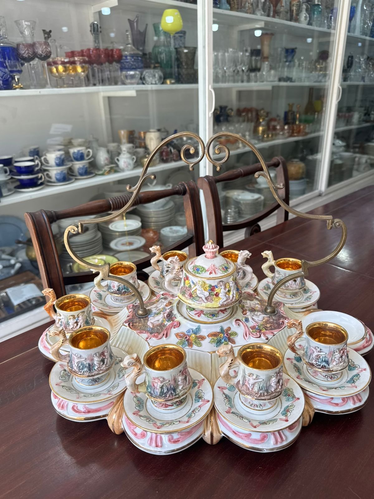 9 tazas con platos: 12 cm de alto x 8 cm de diámetro su boca
