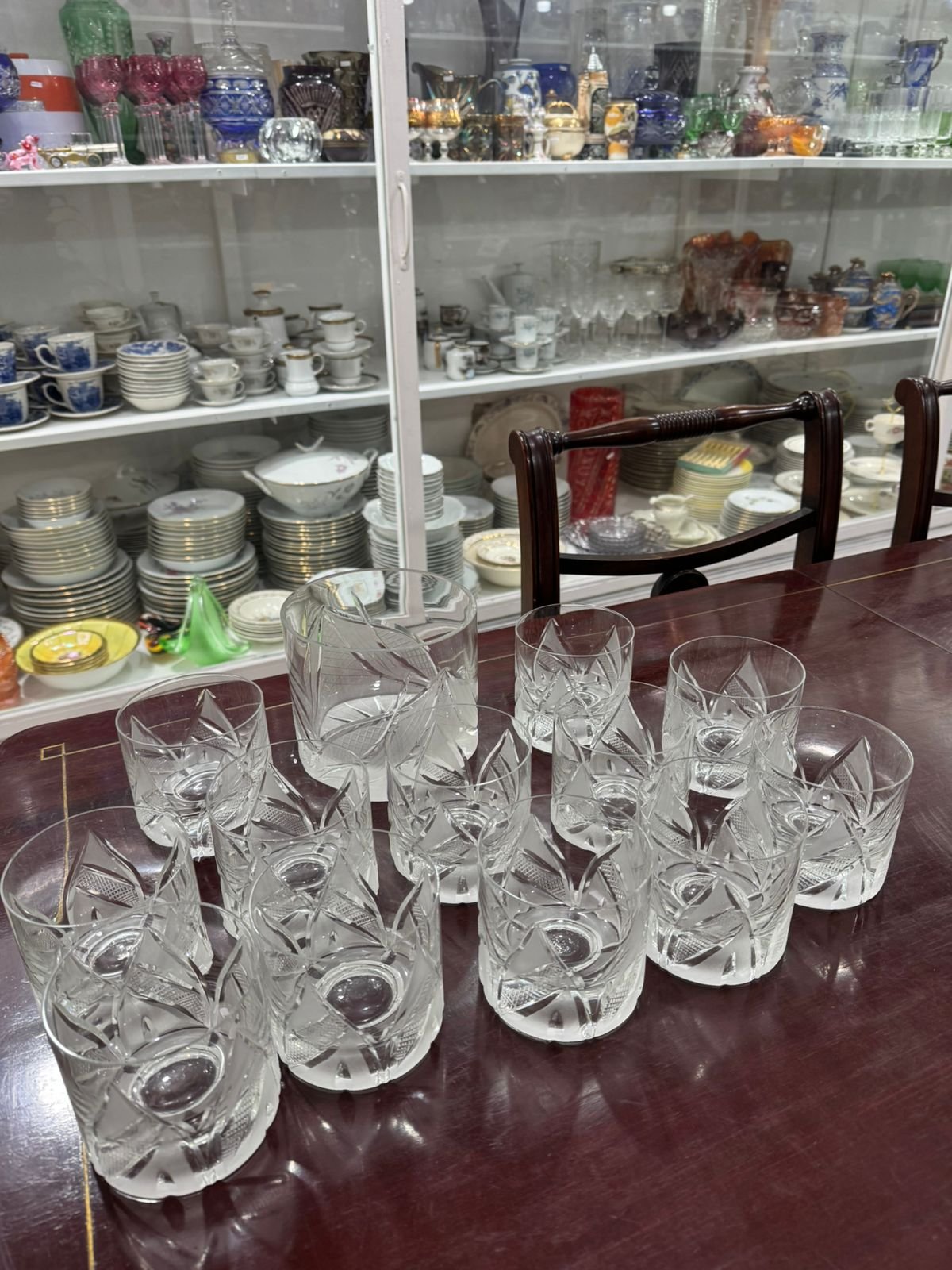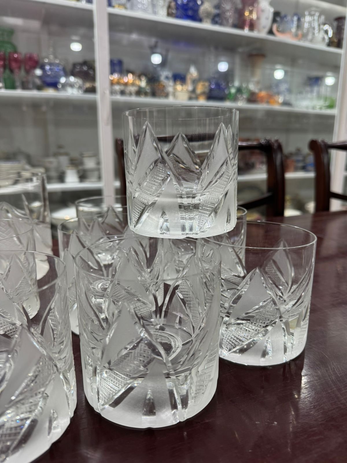 Juego de hielera con 12 vasos de cristal súper tallados whisky