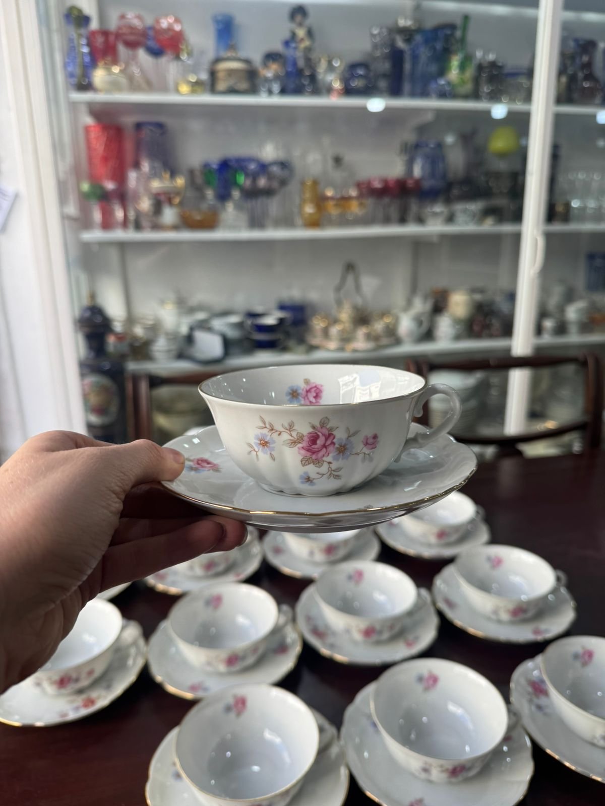 12 tazas de té con platos