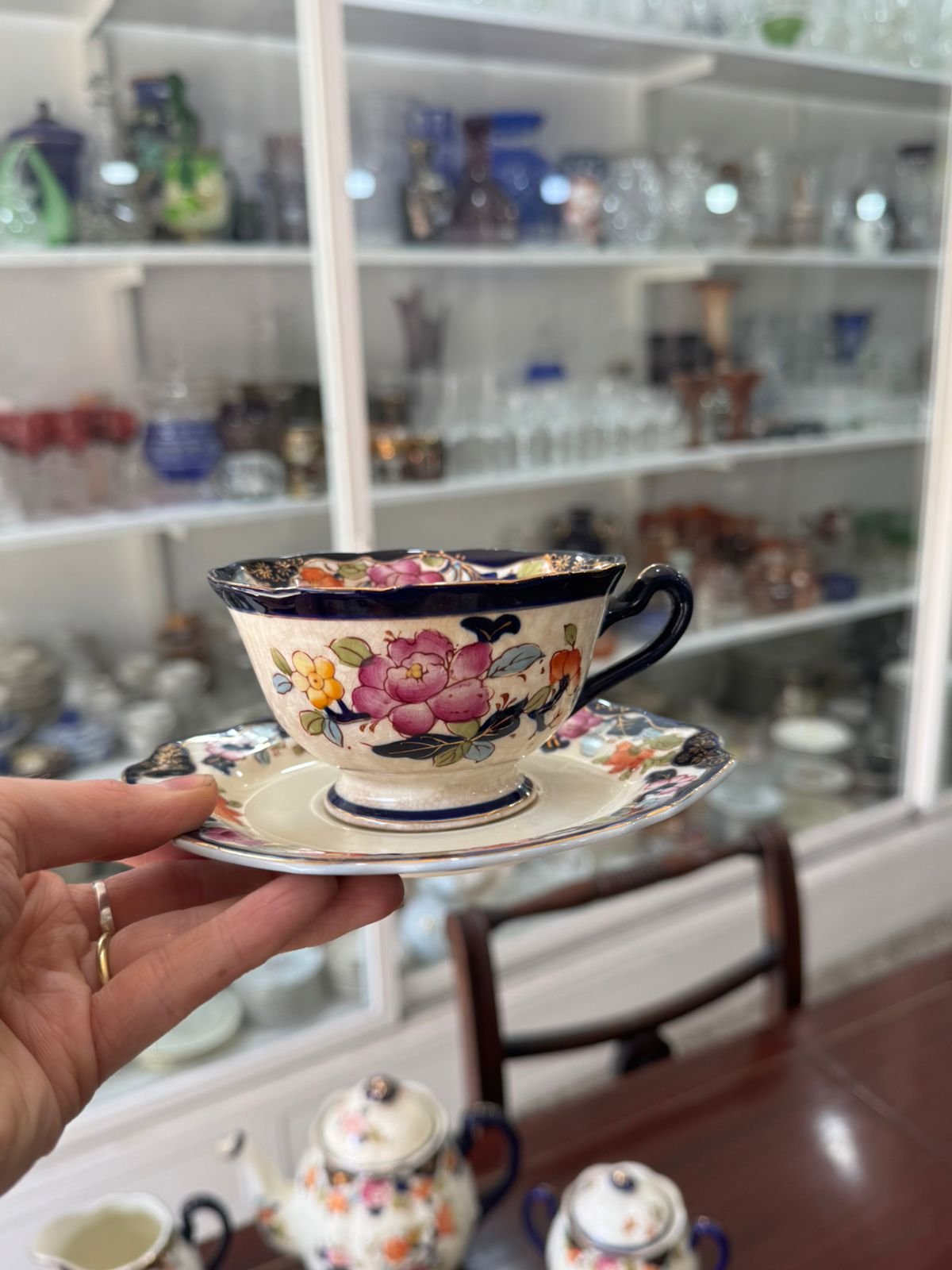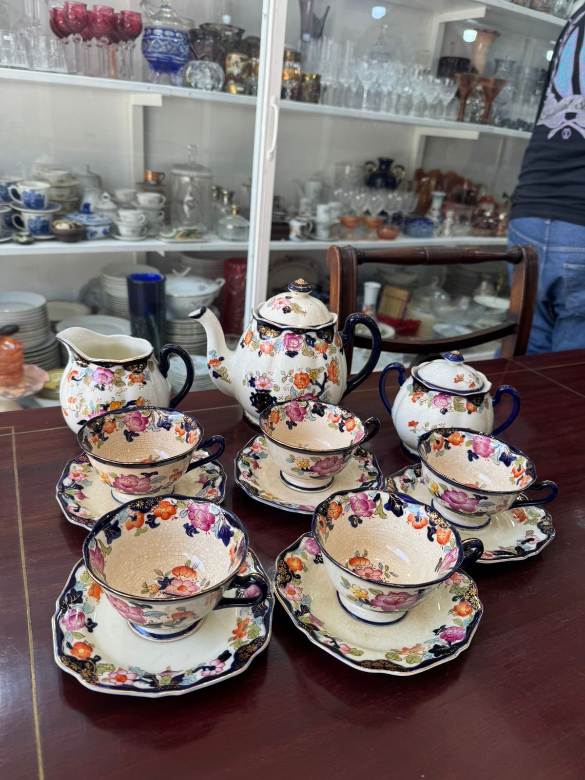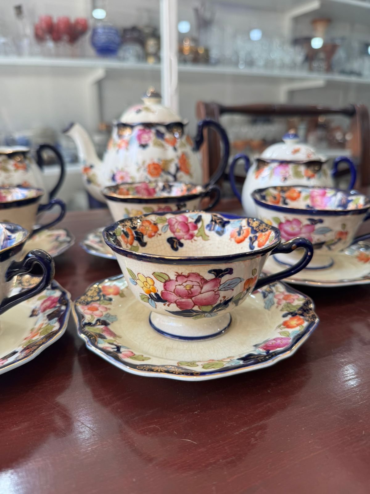 Juego de té japones pintado a mano con oro