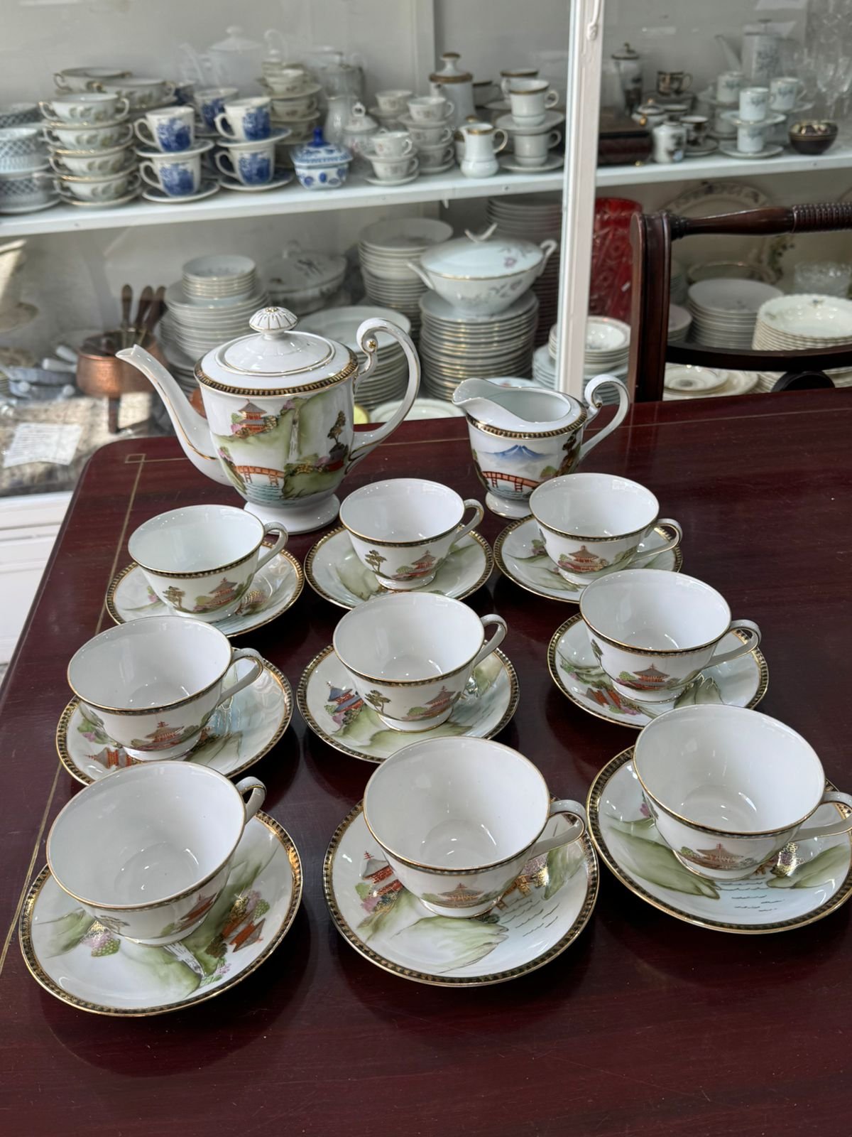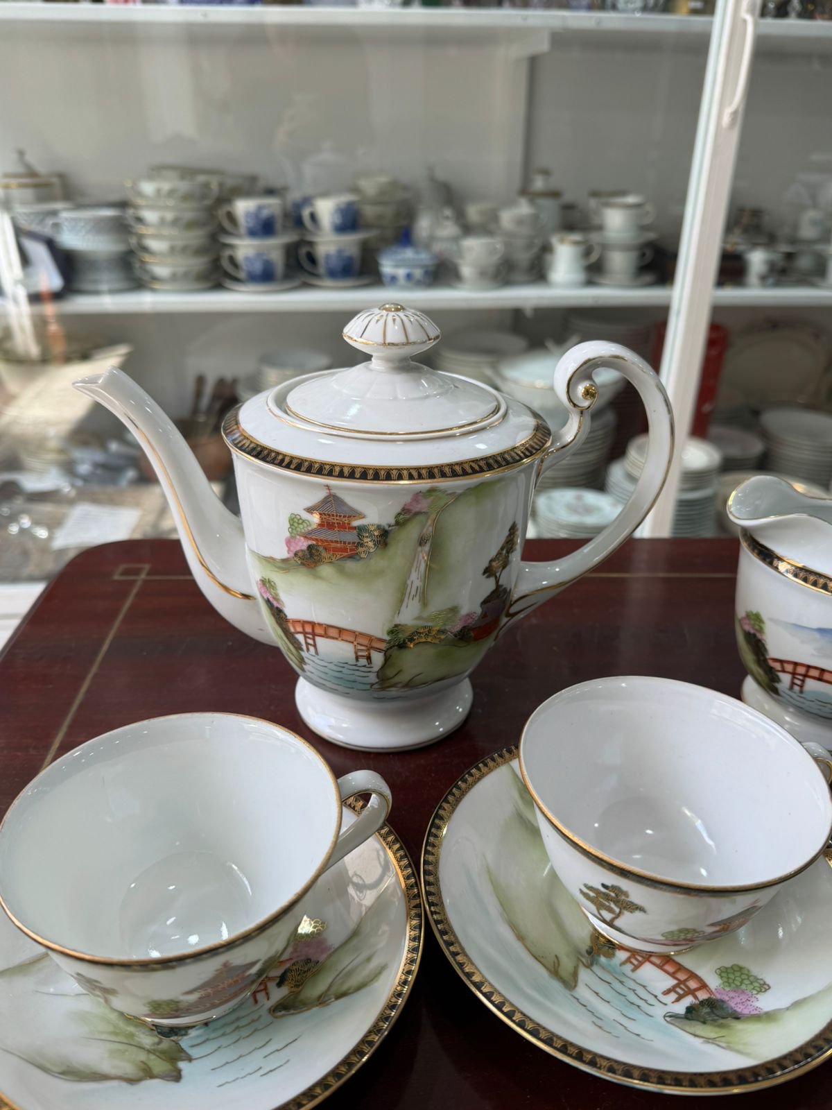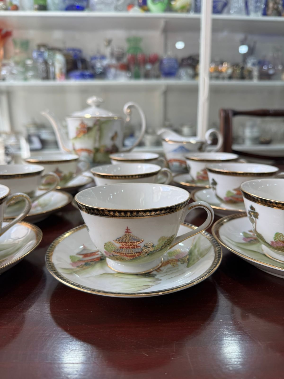 Juego de té porcelana tsuji pintado a mano con oro estilo oriental