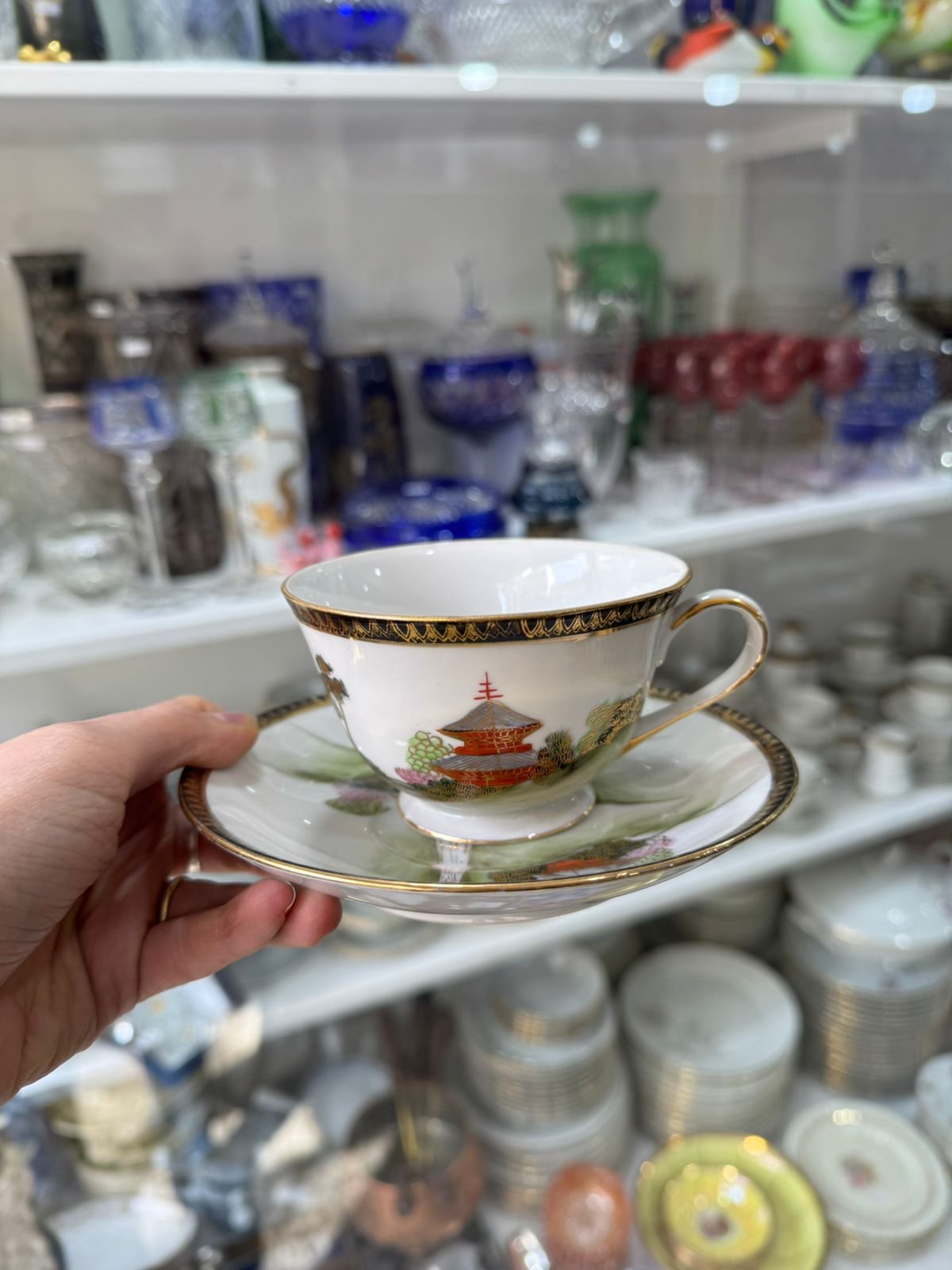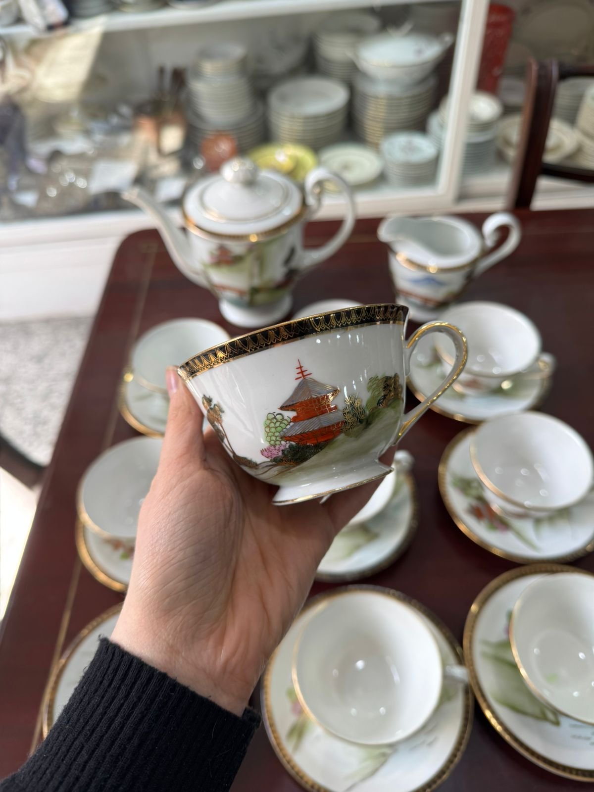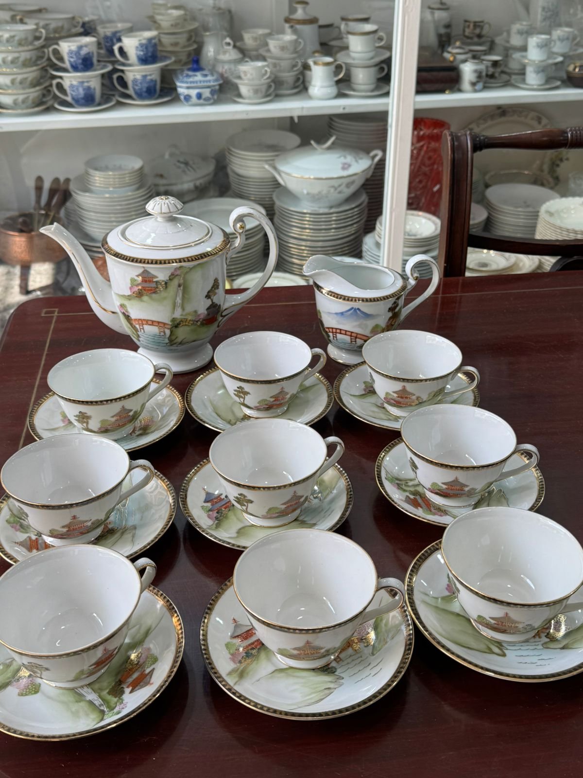 Juego de té porcelana tsuji pintado a mano con oro estilo oriental
