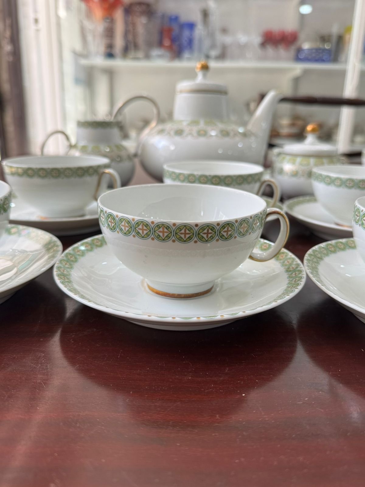 11 tazas de té con platos