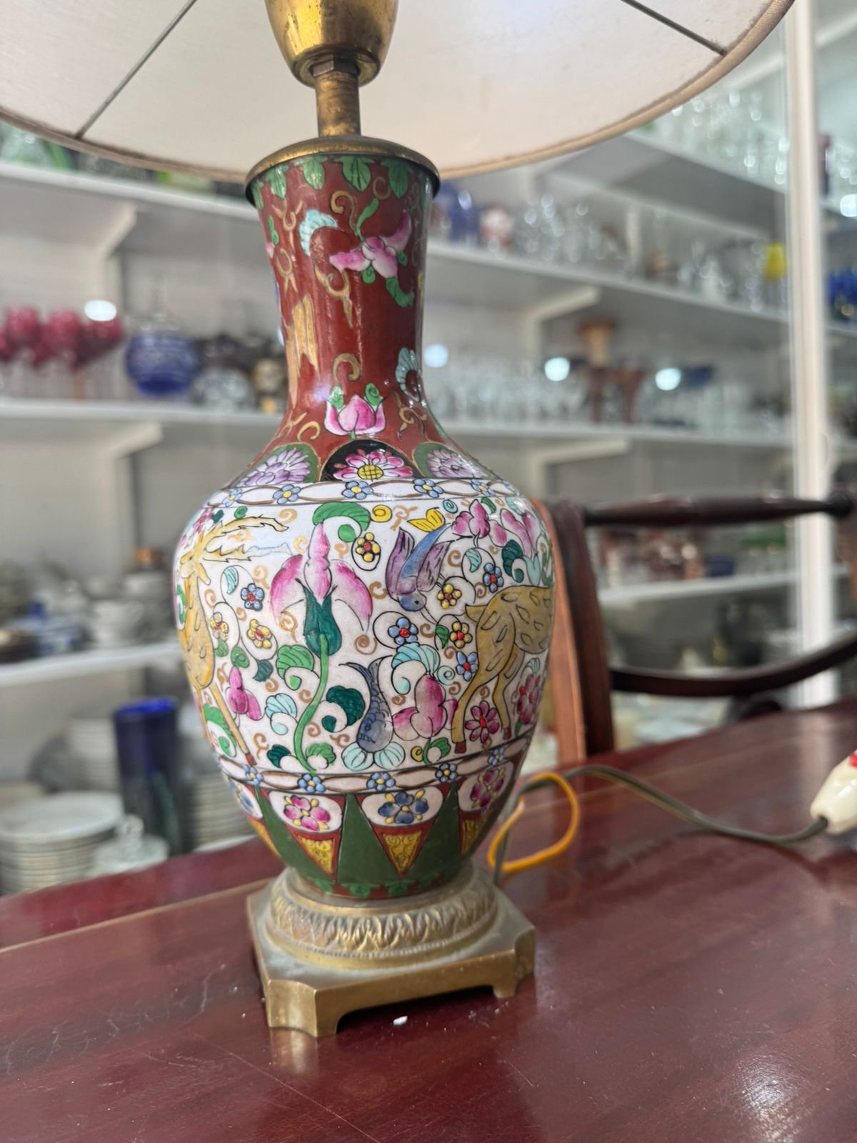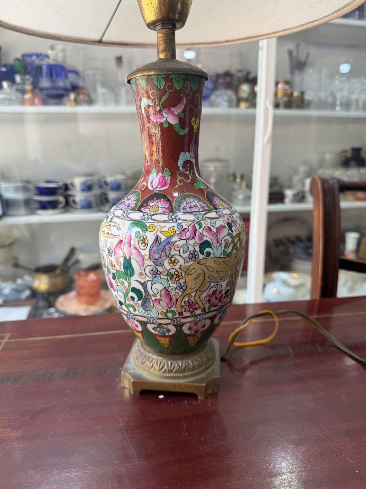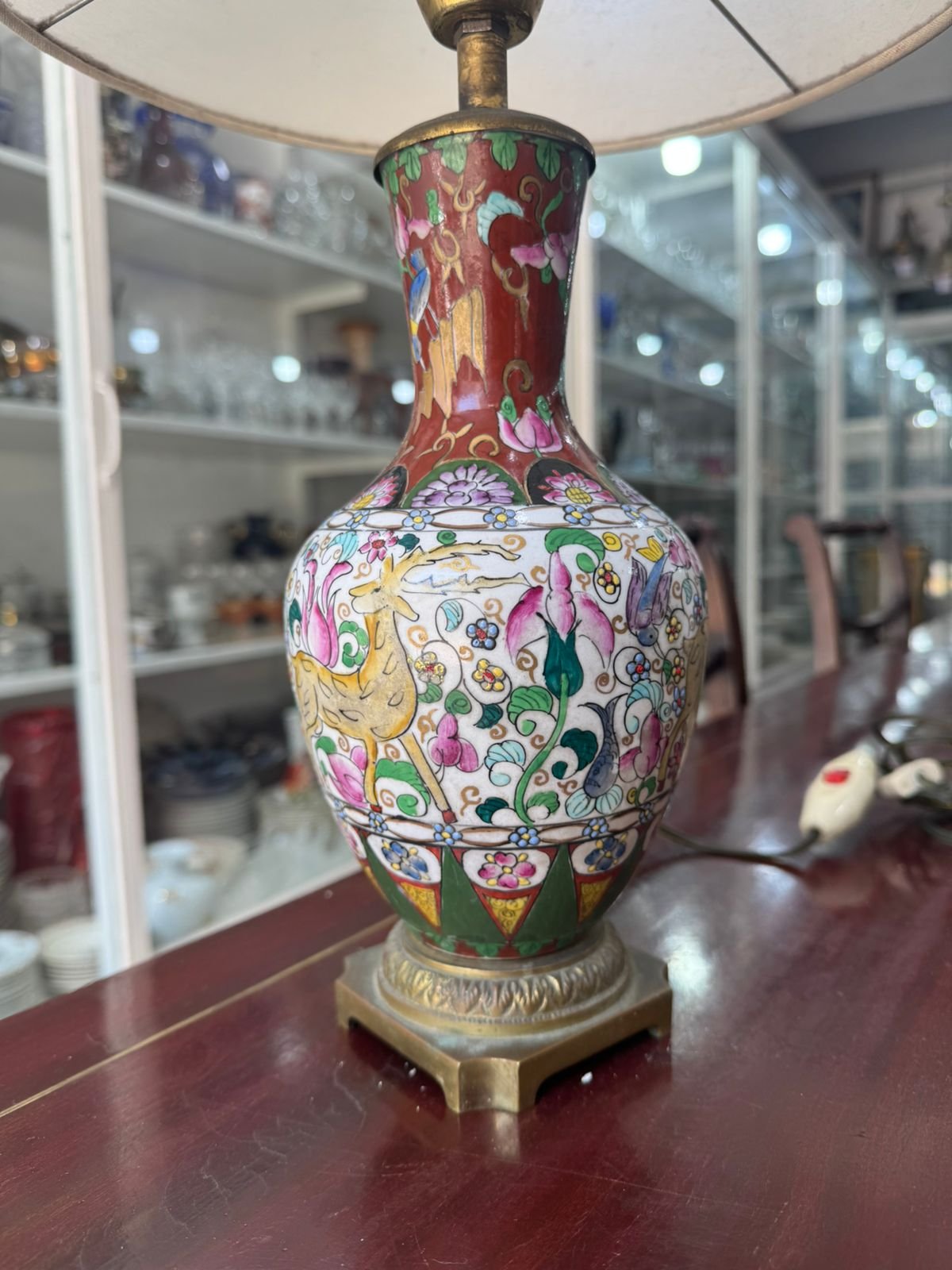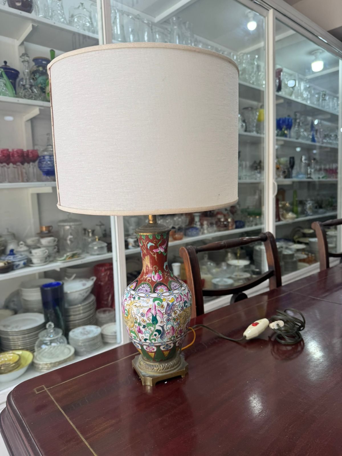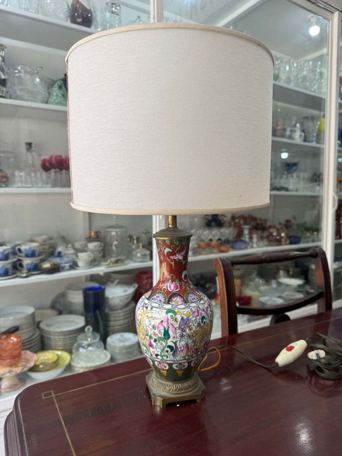 Lámpara porcelana oriental pintada a mano