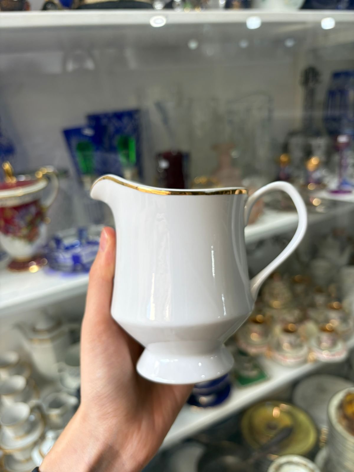 Lechera porcelana con guarda en oro