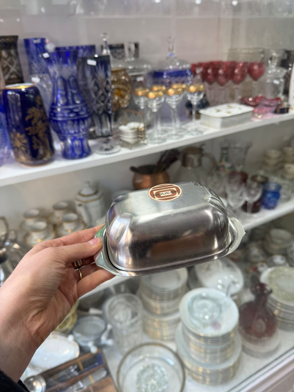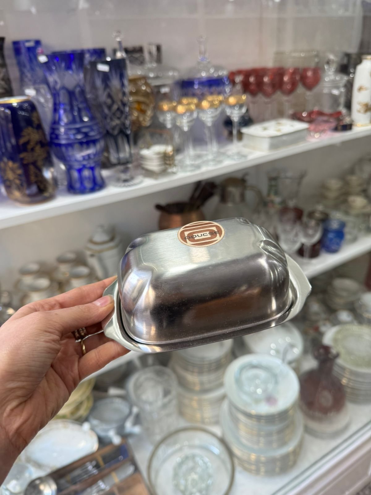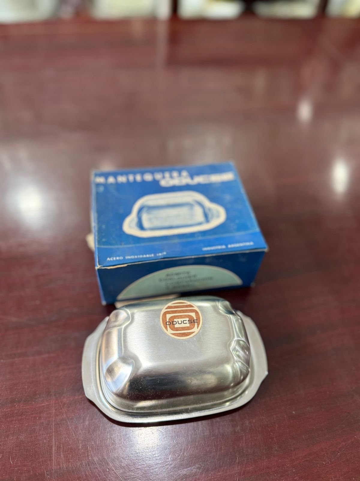 Mantequera de acero inoxidable nueva en caja sin uso