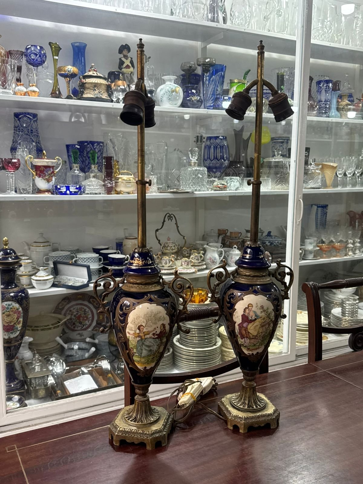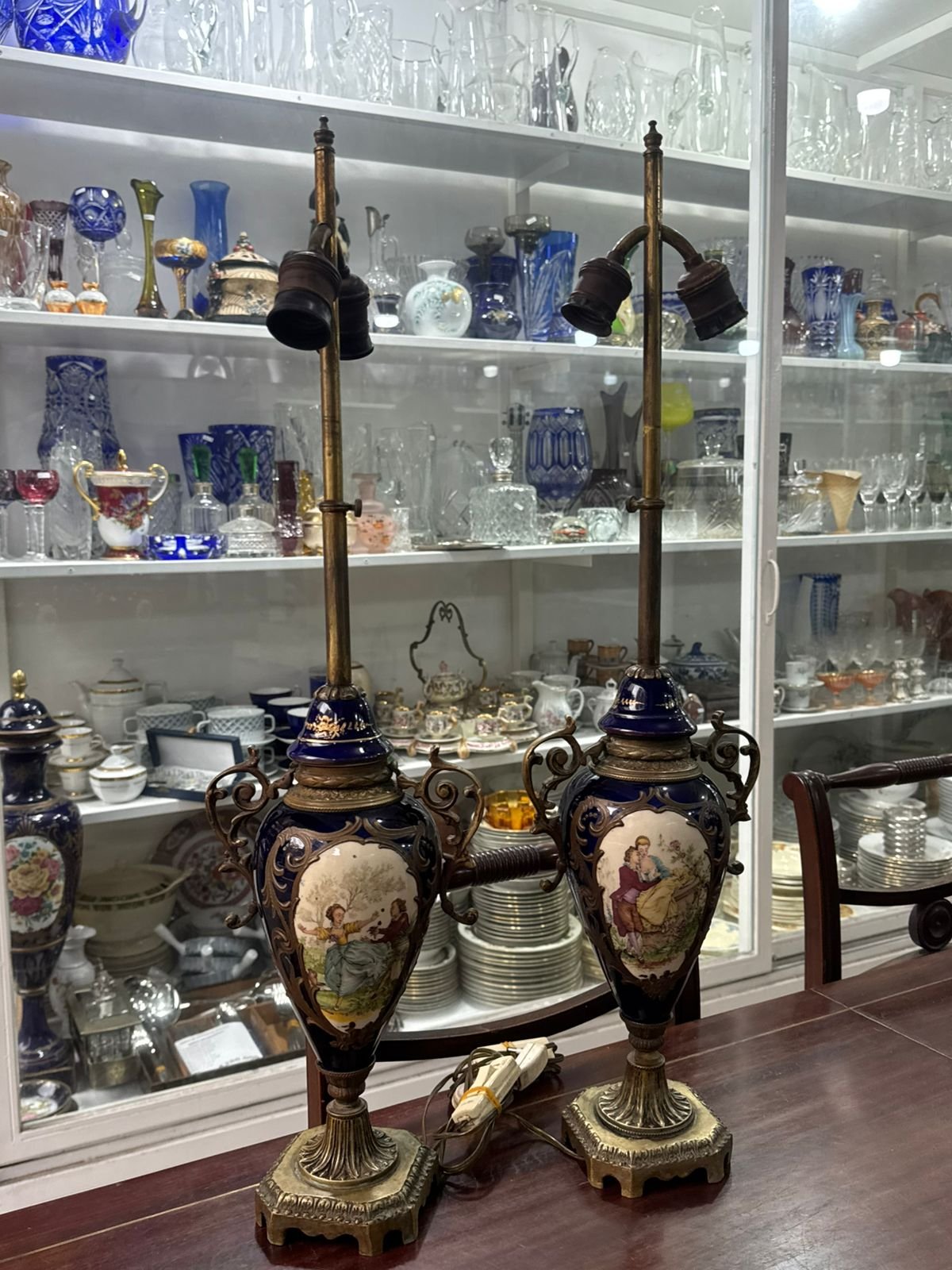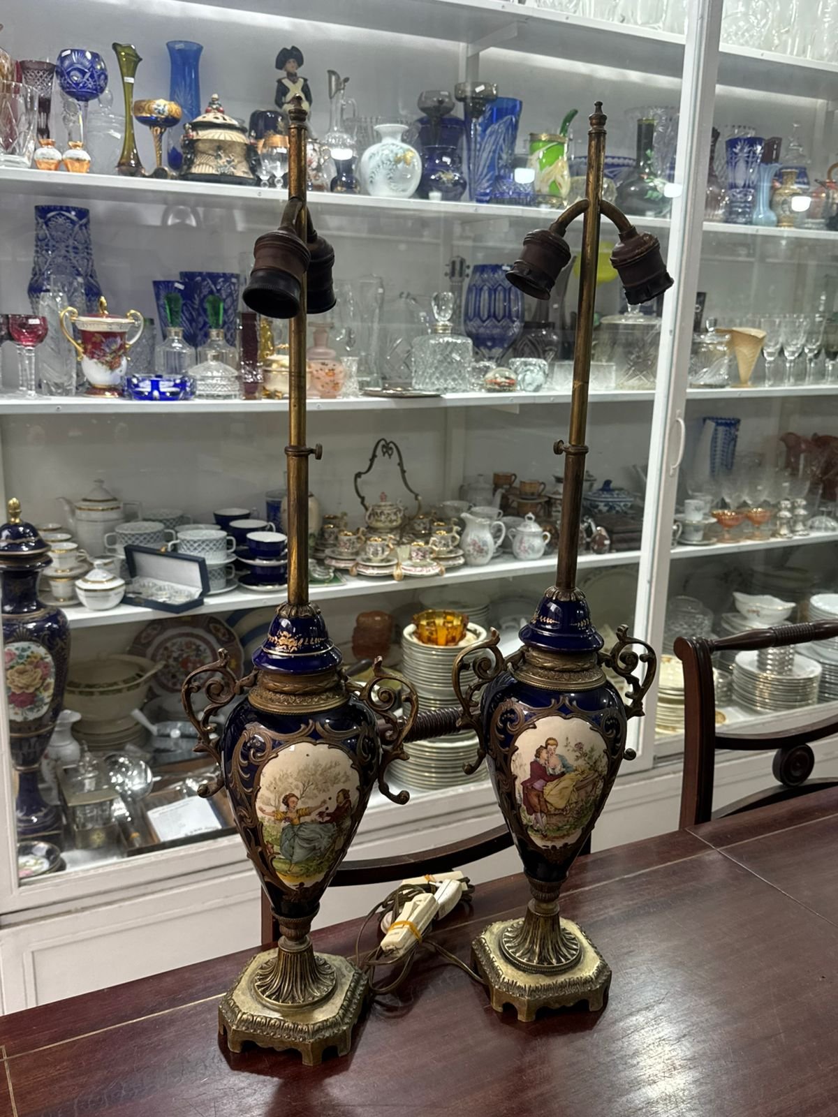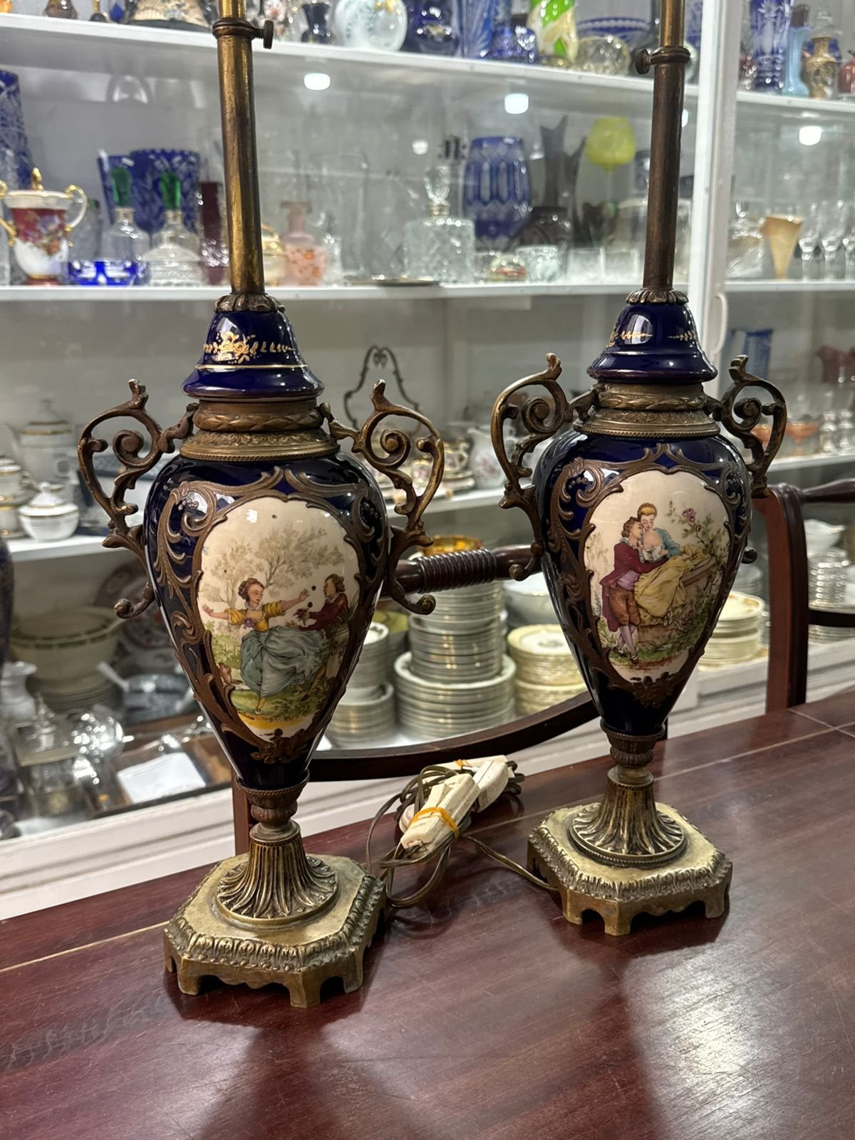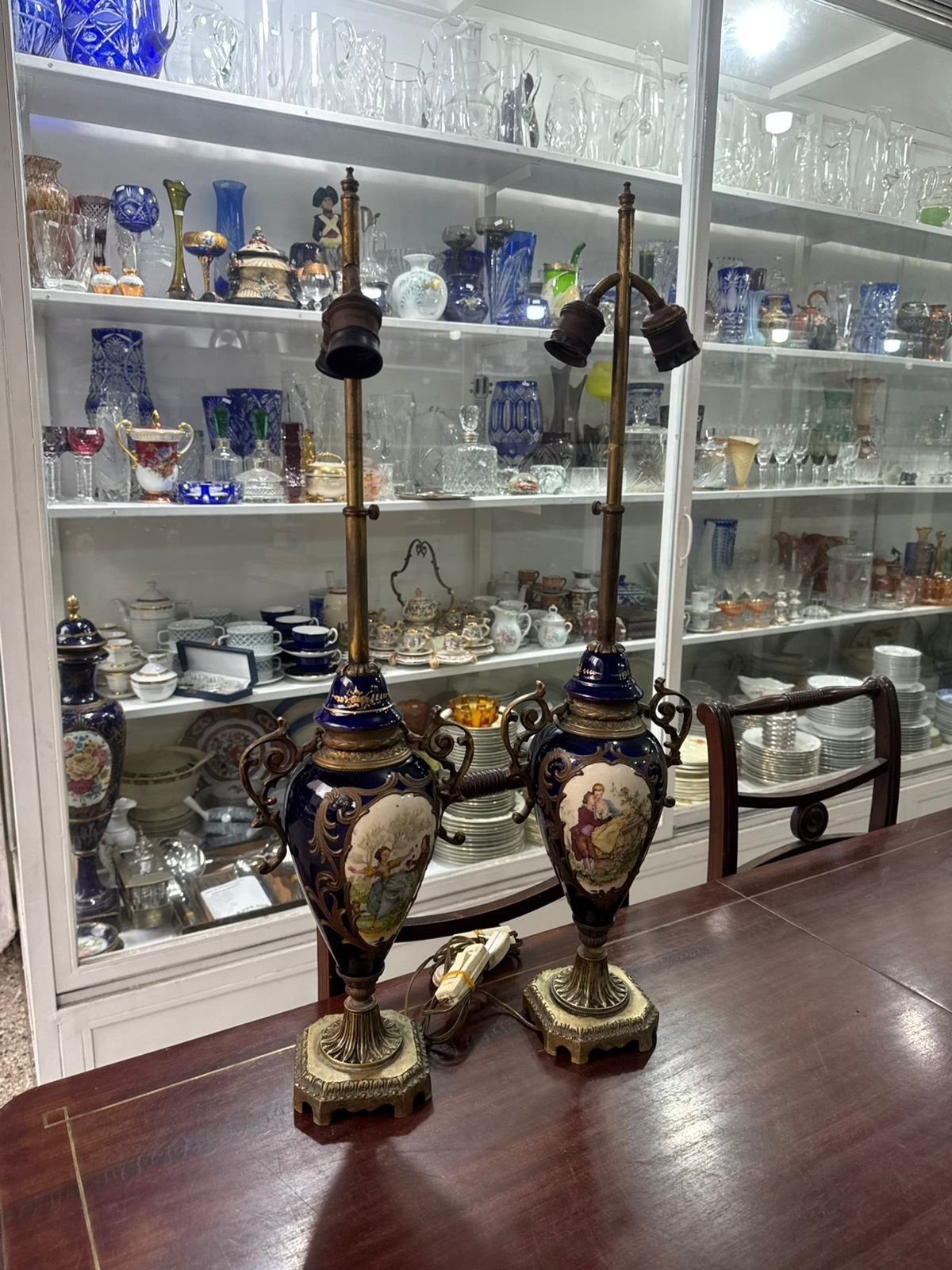 Par de lámparas porcelana azul cobalto estilo sevres o limoges