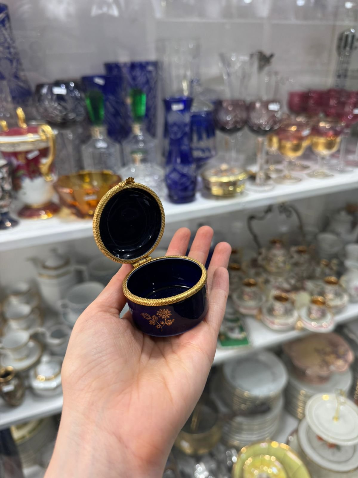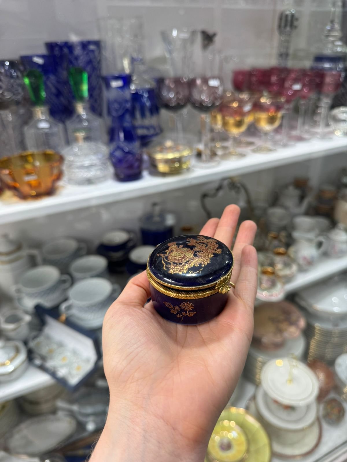 Pastillero o cofre porcelana francesa LIMOGES azul cobalto con oor