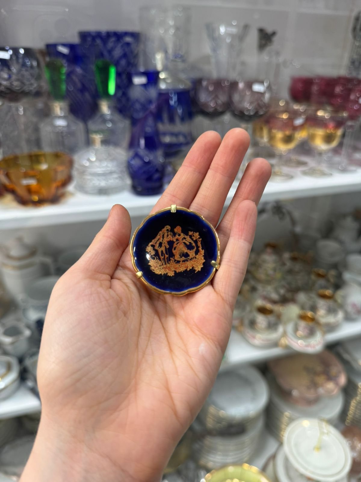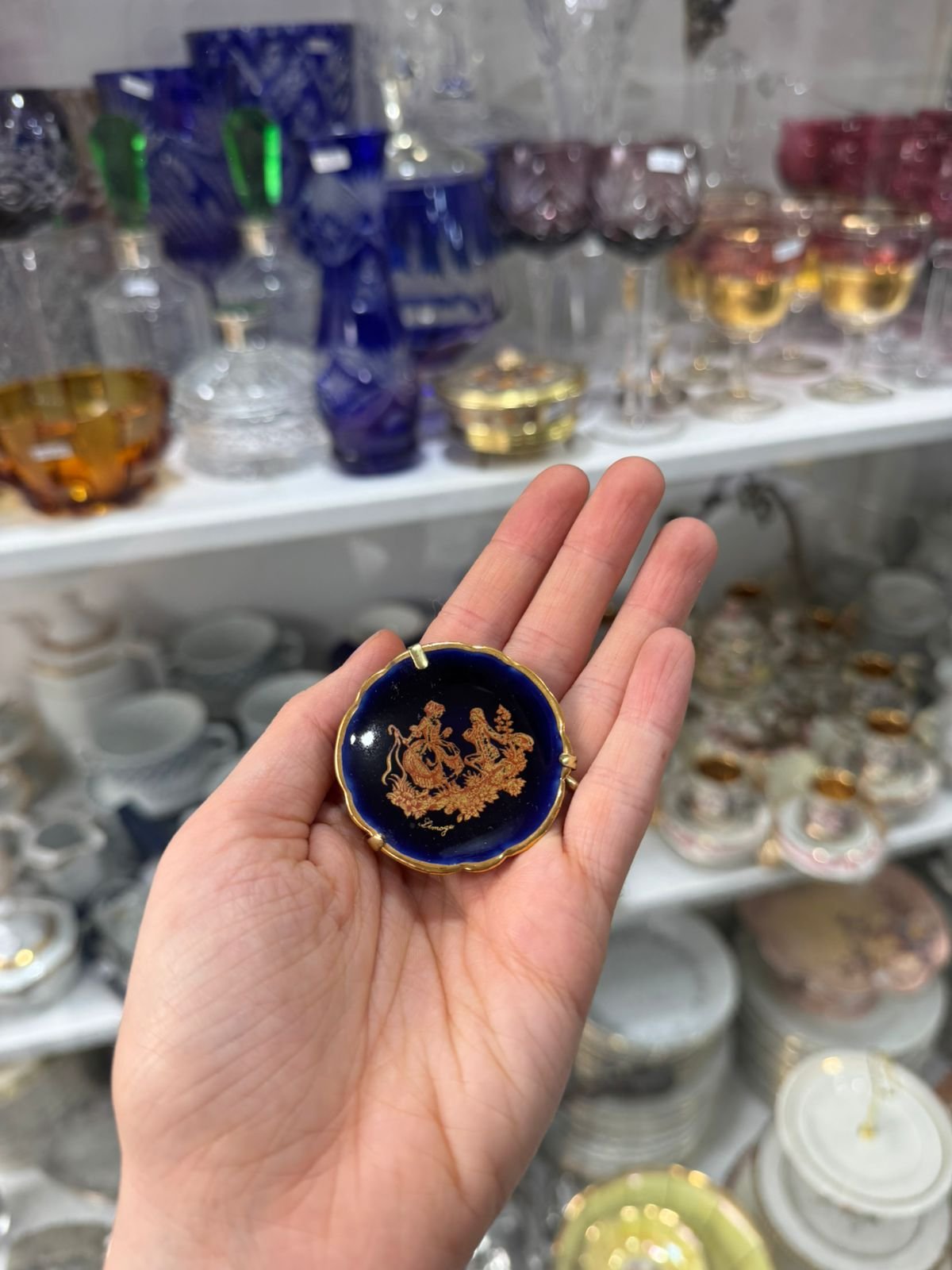 Plato porcelana limoges azul cobalto