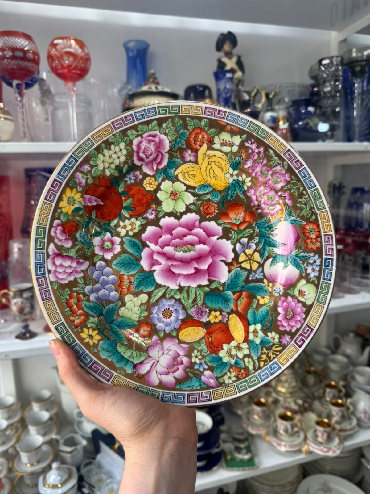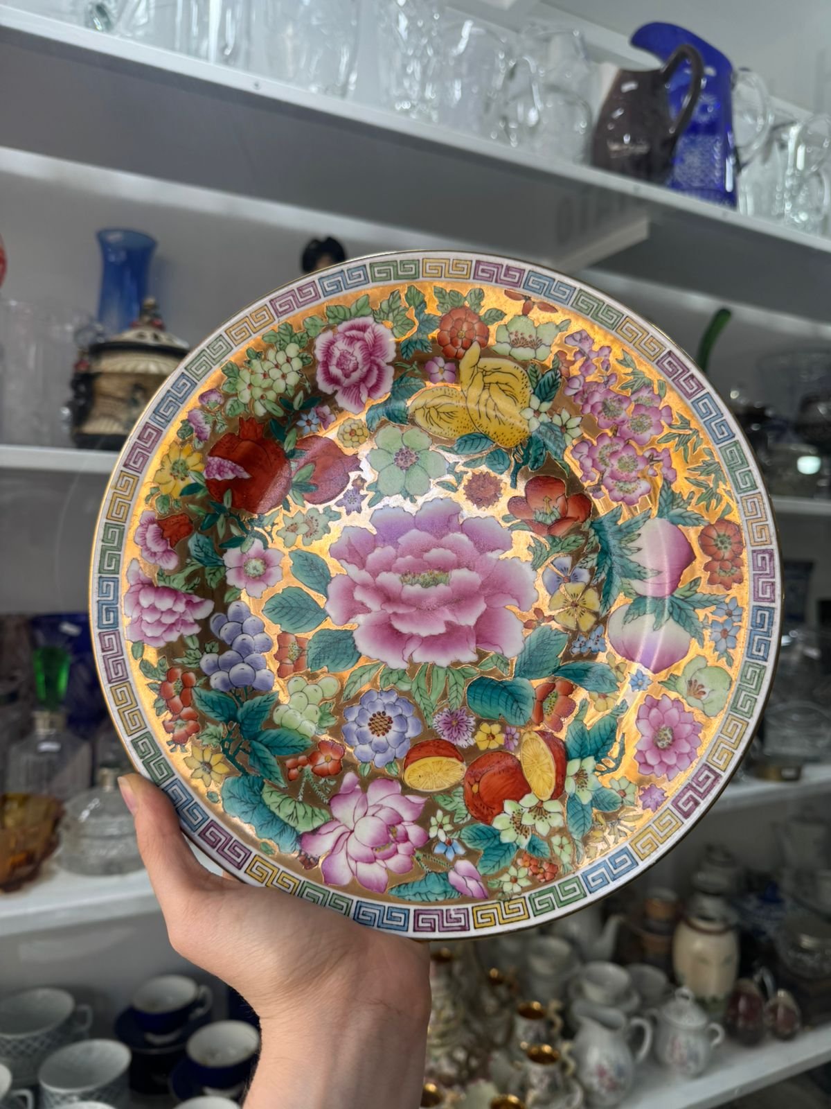 Plato porcelana oriental pintado a mano con oro