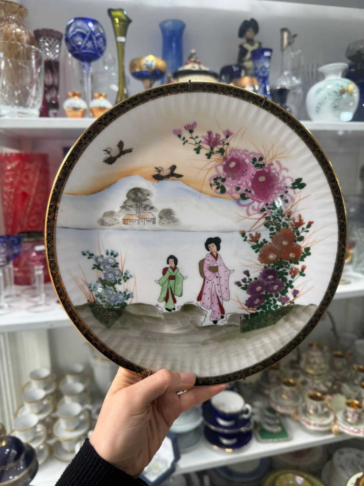 Plato porcelana tsuji con geishas pintado a mano