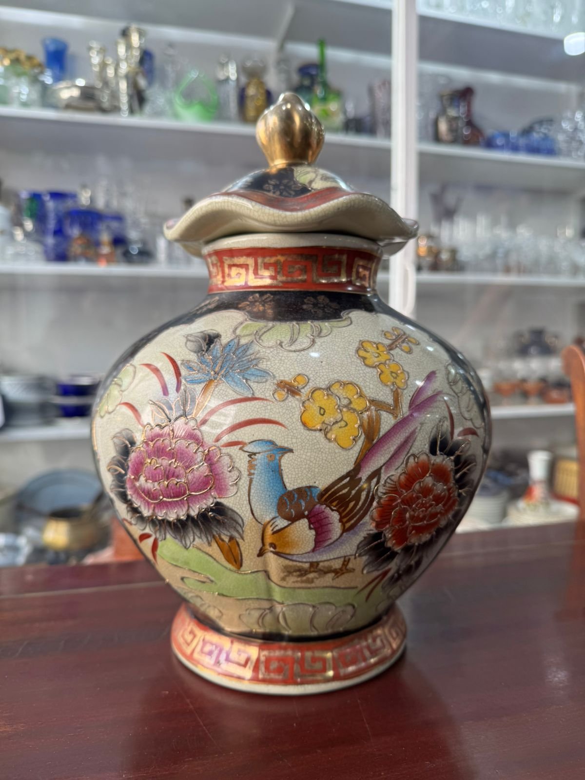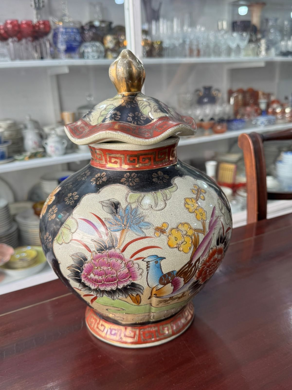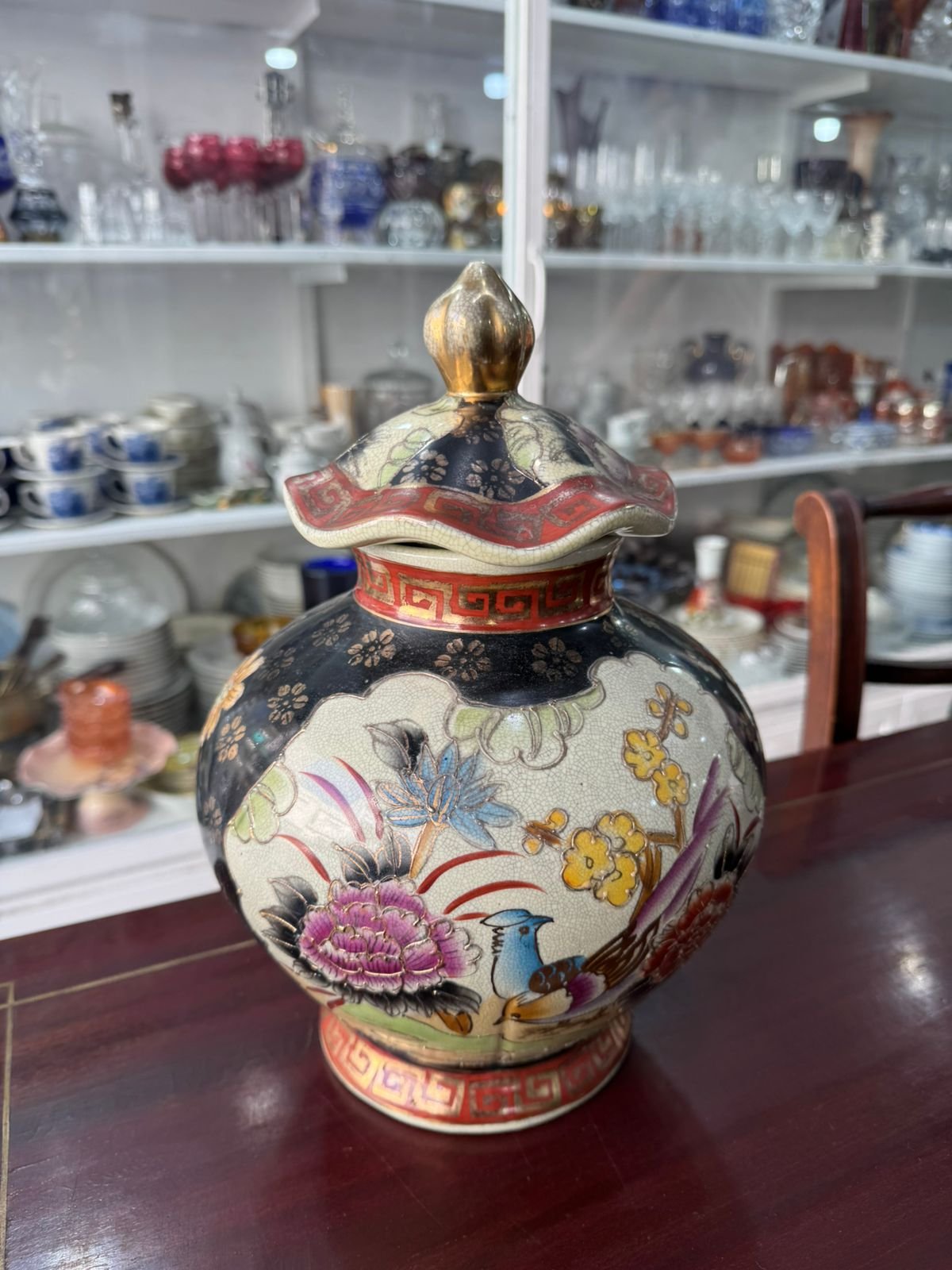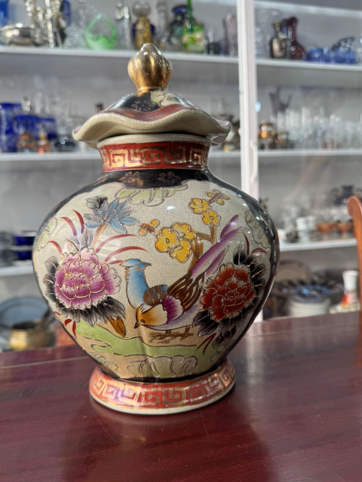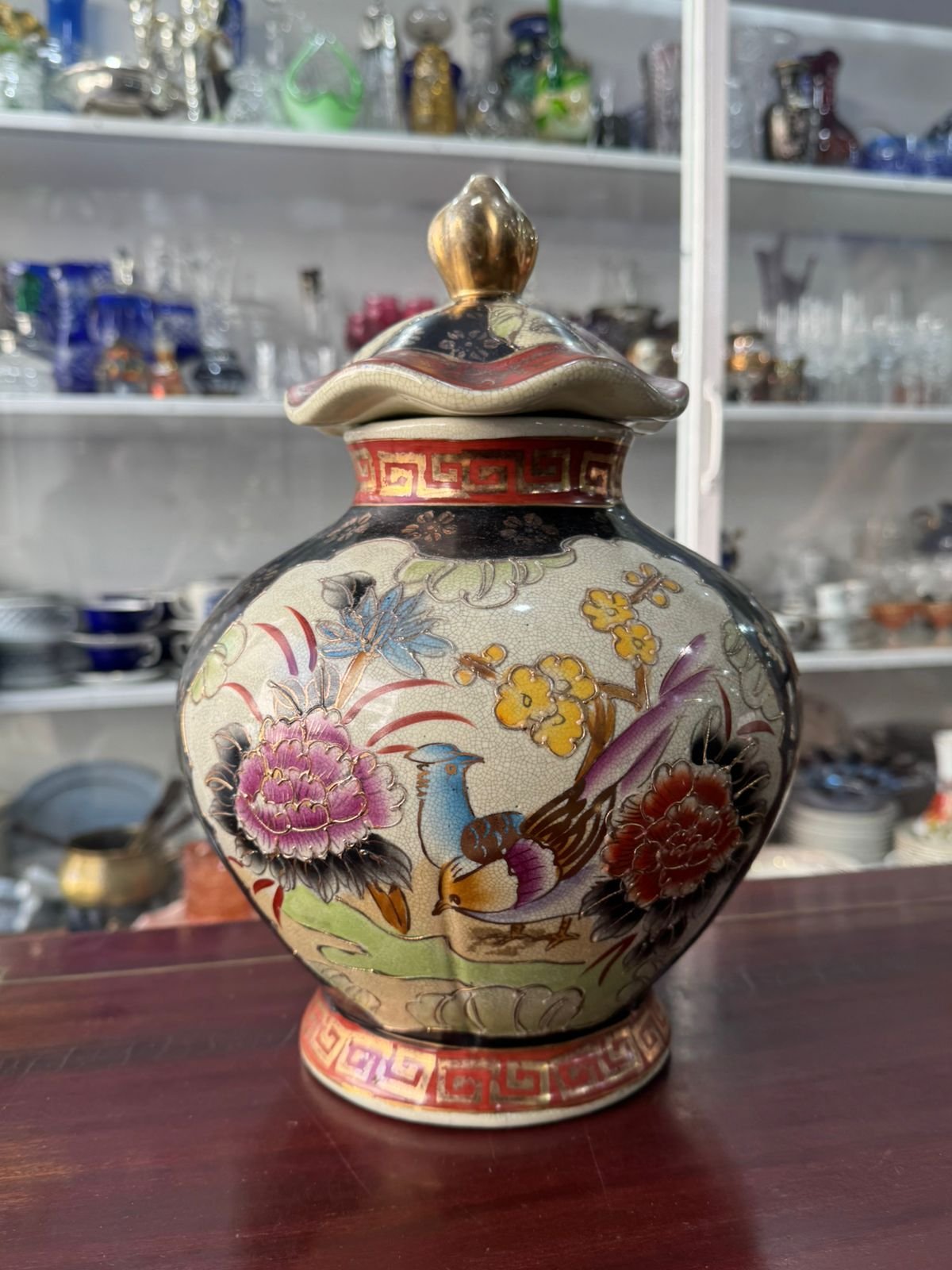 Potiche pintada a mano con oro muy antigua oriental