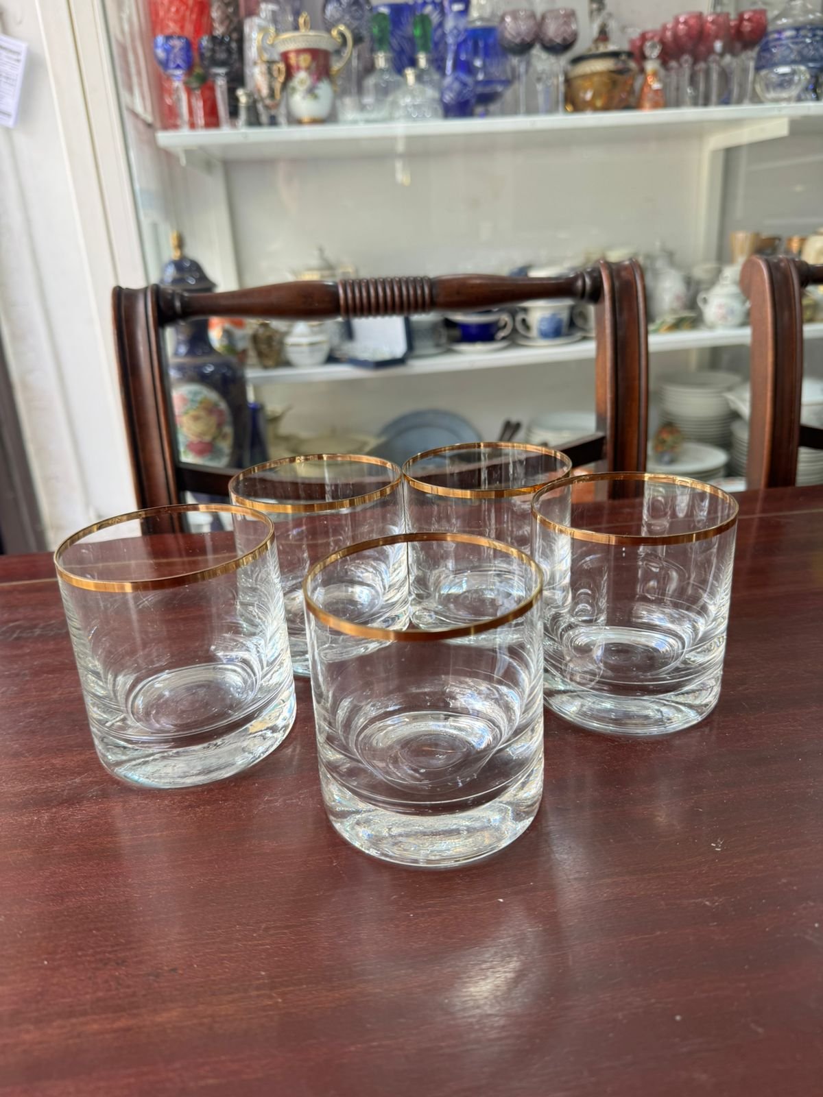 Set de 5 vasos de whisky cristal con guarda en oro
