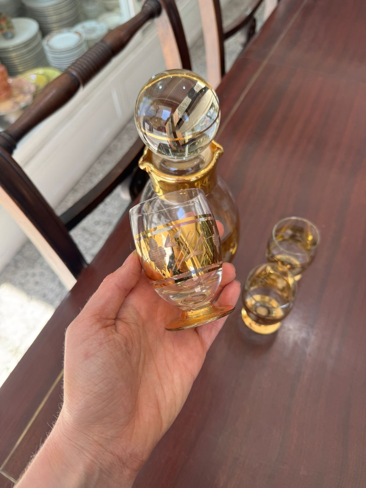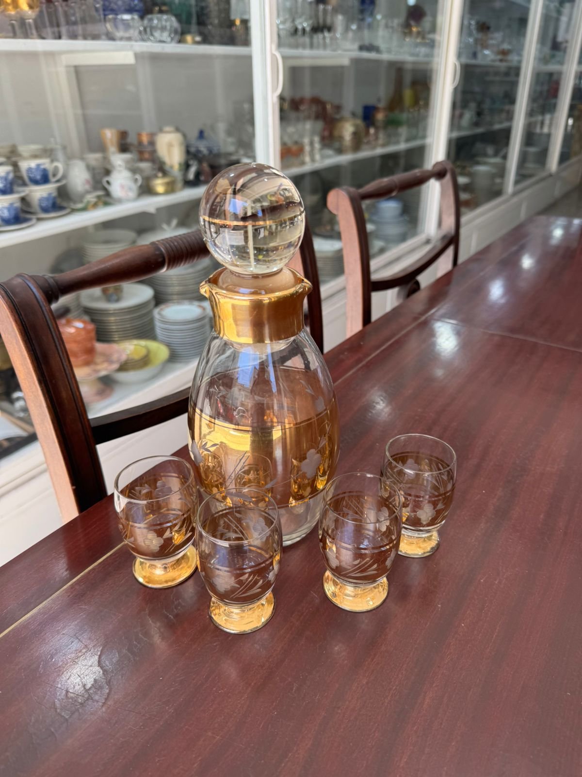 Set de botellón con 4 copas de cristal