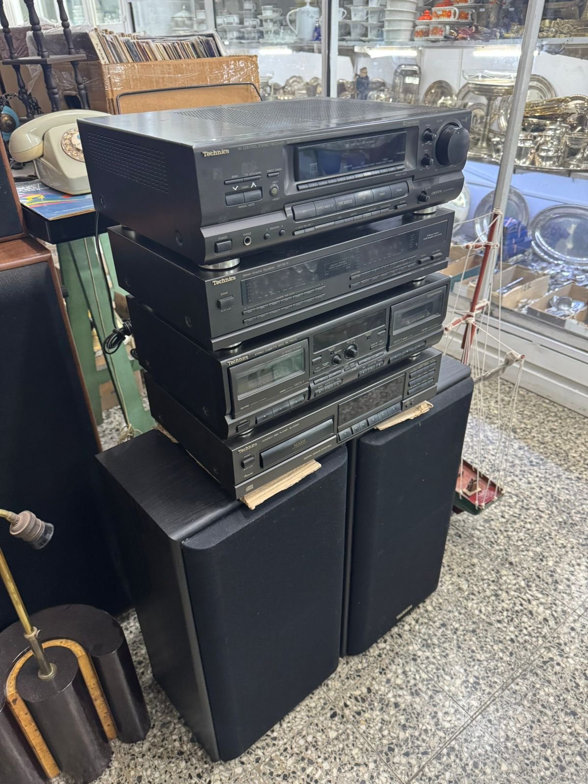 Sintoamplificador, ecualizador, doble casetera, compactera 2 bafles alta fidelidad TECHNICS